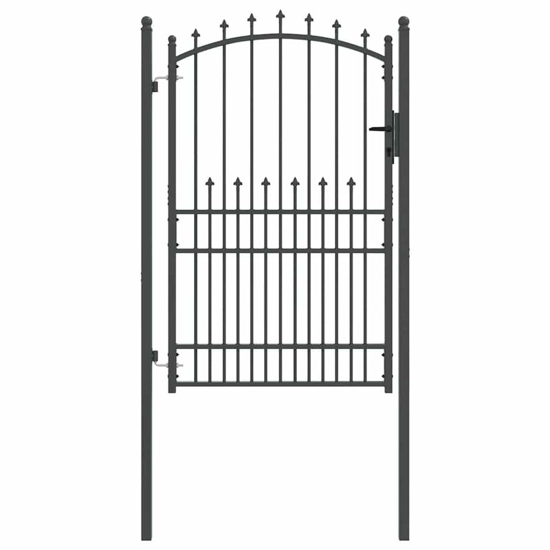 Poarta de gard cu tepi Gri 200 x 100 cm Otel vopsit in pulbere Poarta de gard cu tepi Gri 200 x 100 cm Otel vopsit in pulbere