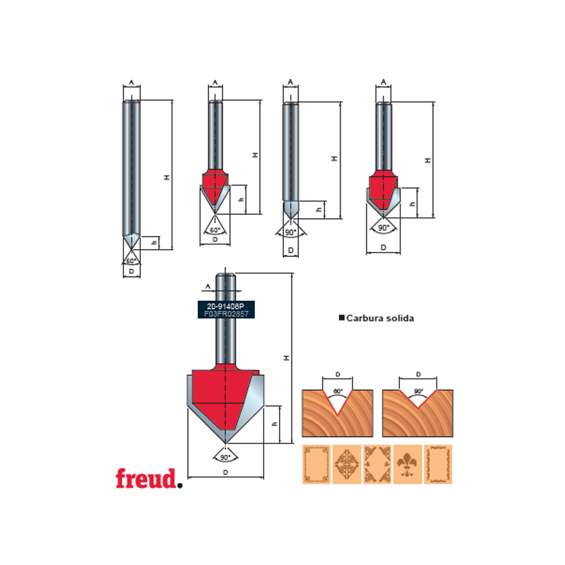 Casa si GradinaConstructiiScule electrice si accesoriiAccesorii pentru frezare20- Freza profilata in V pentru gravura, placata CMS, cu coada, Z=1, Z=2, Z=3, DIM 12.7 - 20-15208P