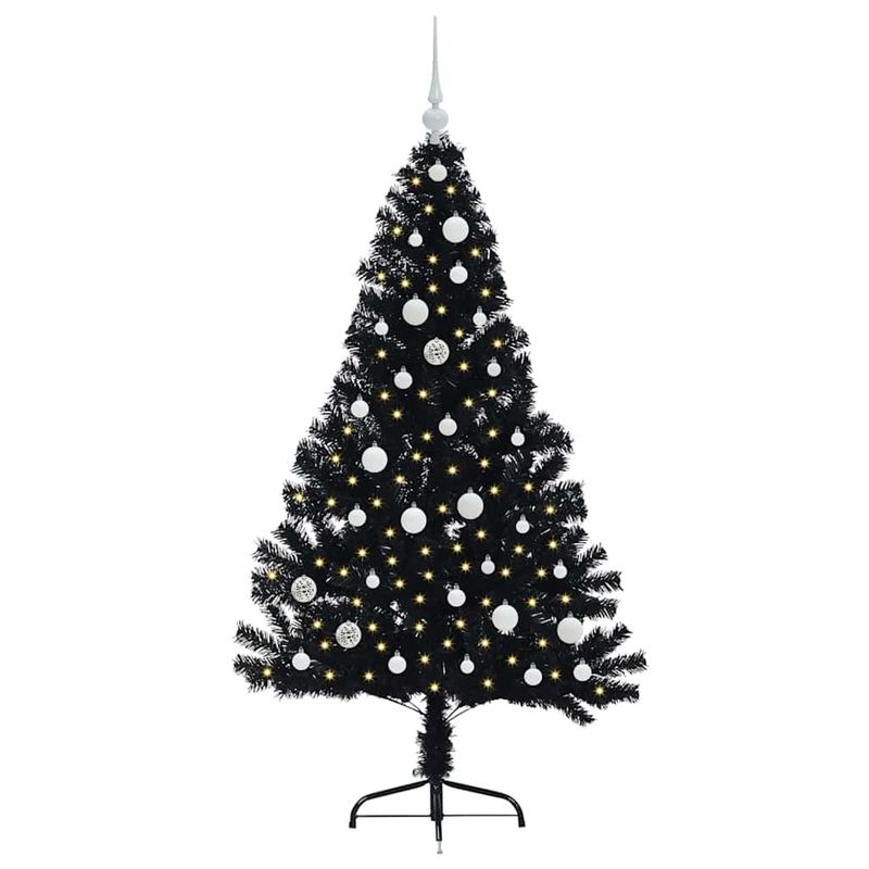 Casa si GradinaDecoratiuniDecoratiuni de sezonPom de Craciun artificial pre-iluminat Negru 150 cm PVC