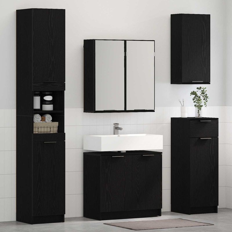 Materiale: Lemn prelucrat, setul asta de baie e robust si de incredere. Finisajul neted adauga o nota de eleganta, iar durabilitatea se pastreaza usor cu un pic de ingrijire. Componente Incluse: Setul include un dulap pentru chiuveta de 64.5 x 33.5 x 59 cm, un dulap cu oglinda de 64 x 20 x 66.5 cm, doua dulapuri separate si un dulap de perete de 32 x 33.5 x 188.5 cm. Fiecare piesa e gandita sa raspunda la nevoile de depozitare, maximizand spatiul. Caracteristici /Functie /Design: Designul se concentreaza pe functionalitate cu multe optiuni de depozitare, datorita compartimentelor, sertarelor si rafturilor. Dulapurile vin in dimensiuni variate pentru a se adapta oricarui spatiu de baie. Are un design minimalist ce completeaza perfect un spatiu modern. Utilizari Recomandate: Ideal pentru pastrarea ordinii in baie, setul asta e perfect pentru stocarea prosoapelor, produselor de ingrijire si cosmetice. Se potriveste perfect pentru orice familie care vrea functionalitate si eleganta in baie. Ingrijire &Intretinere: Pastreaza setul curat stergandu-l cu o carpa uscata. Aceasta ingrijire e simpla si ajuta la mentinerea aspectului si durabilitatii, adaptandu-se stilului de viata modern.