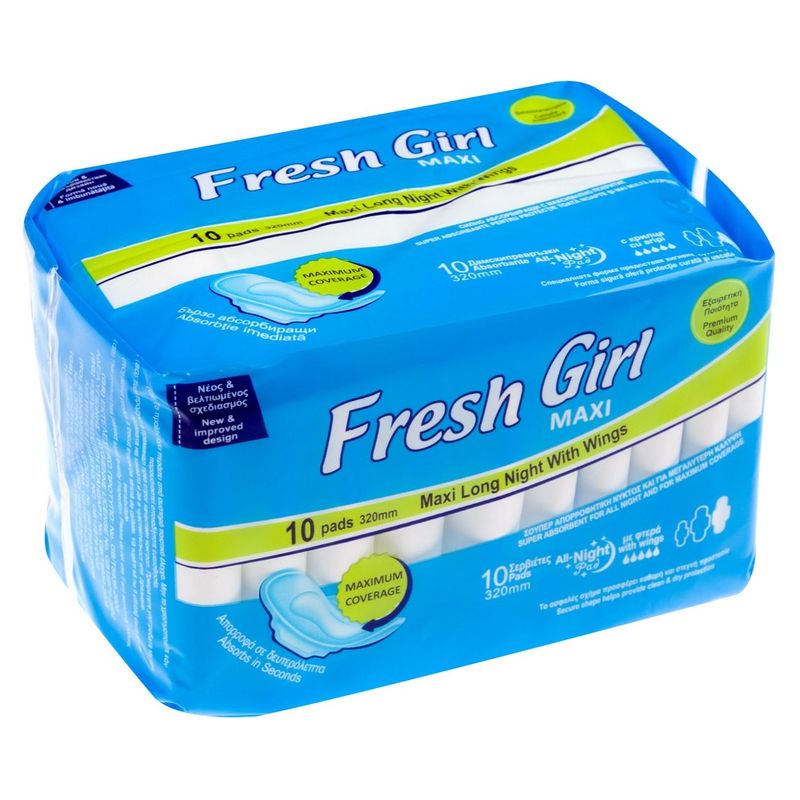 Absorbante maxi fresh girl, maxi long night, 320mm, set 10 bucati, albastru Absorbante maxi fresh girl, maxi long night, 320mm, set 10 bucati, albastru