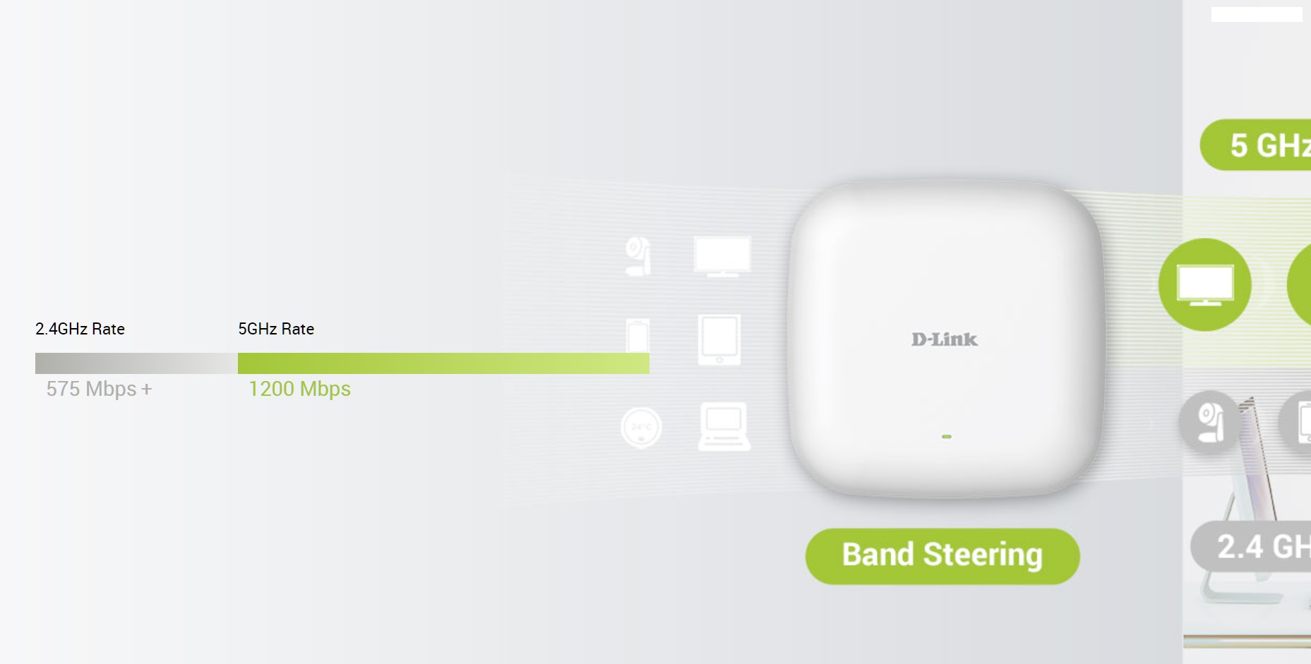 Functia de echilibrare a sarcinii a DAP-X2810 distribuie sarcina de lucru intre doua sau mai multe puncte de acces pentru a obtine o utilizare optima a resurselor, a debitului si a timpului de raspuns, in timp ce Airtime Fairness ajuta la distribuirea unor cantitati egale de timp de emisie pentru fiecare client conectat. Band Steering conecteaza automat dispozitive precum telefoanele inteligente si tabletele la banda de 5 GHz de capacitate mai mare, permitand in acelasi timp dispozitivelor pregatite pentru 2,4 GHz sa ramana. Rezultatul este o conexiune constanta si consecventa pentru fiecare utilizator - echilibrul perfect.