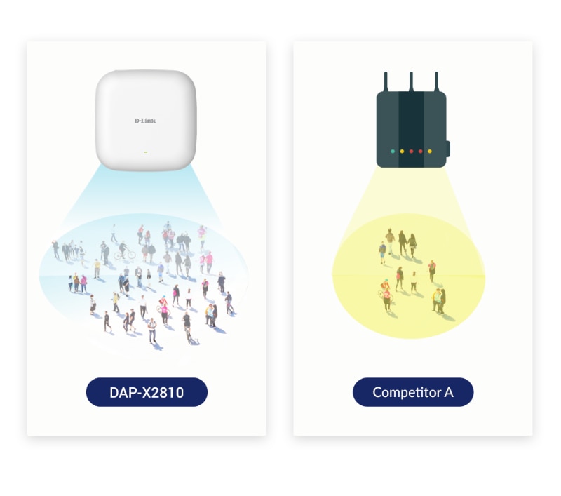 DAP-X2810 este dotat cu tehnologia Wi-Fi de ultima generatie 6. MU-MIMO imbunatatit cu si mai multe fluxuri uplink si downlink deserveste mai multe dispozitive simultan. OFDMA mareste dramatic eficienta transmisiei, iar 1024-QAM impacheteaza si mai multe date, aducand cresteri de viteza de 25%.