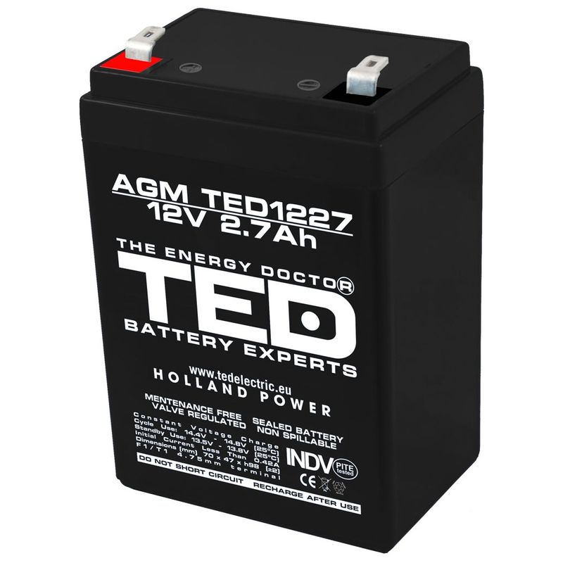 PC, gaming si accesoriiUPS-uriAccesorii UPS-uriAcumulator AGM VRLA 12 V 2.7 A dimensiuni 70 mm x 47 m m x h 98 mm F1 TED Battery Expert Holland TED003119 (20)