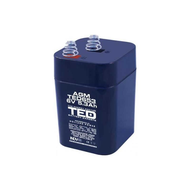 Acumulator AGM VRLA 6V 5.3A dimensiuni 67mm x 67mm x h 97mm cu arcuri tip 4R25 TED Battery Expert Holland.