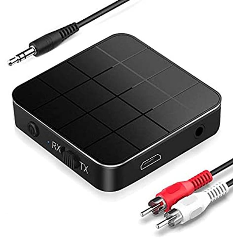 · 【Transmitator si receptor】Transmitator Bluetooth care accepta modul receptor dual-stream (RX) si modul transmitator (TX) pentru a adauga conectivitate fara fir la dispozitivele dvs. cu fir si a transmite muzica fara fir. Modul receptor (mod RX, lumina albastra): Transmite sunetul fara fir de la telefonul, computerul cu Bluetooth activat la stereo, difuzoarele sau castile. Modul transmitator (mod TX, lumina rosie): transmite fara fir sunetul de la televizorul tau fara Bluetooth, stereo de acasa sau CD player la castile tale Bluetooth