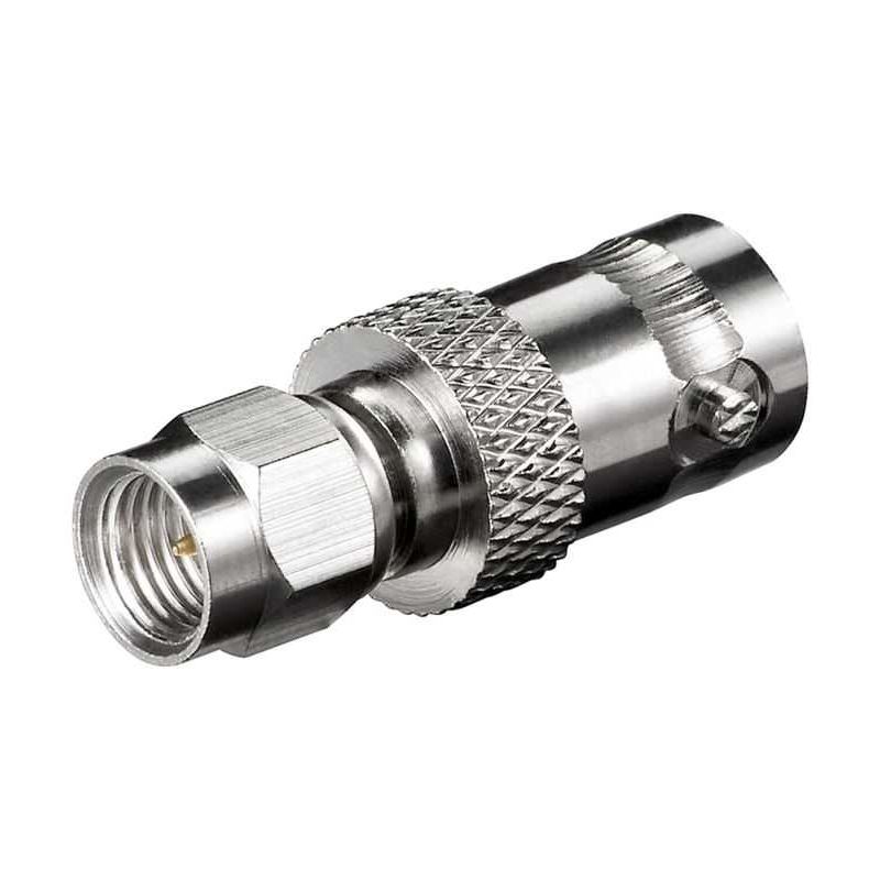 Adaptor SMA tata - BNC mama pini auriti pentru cablu RG 174/U Goobay 11856 Adaptor SMA tata - BNC mama pini auriti pentru cablu RG 174/U Goobay 11856