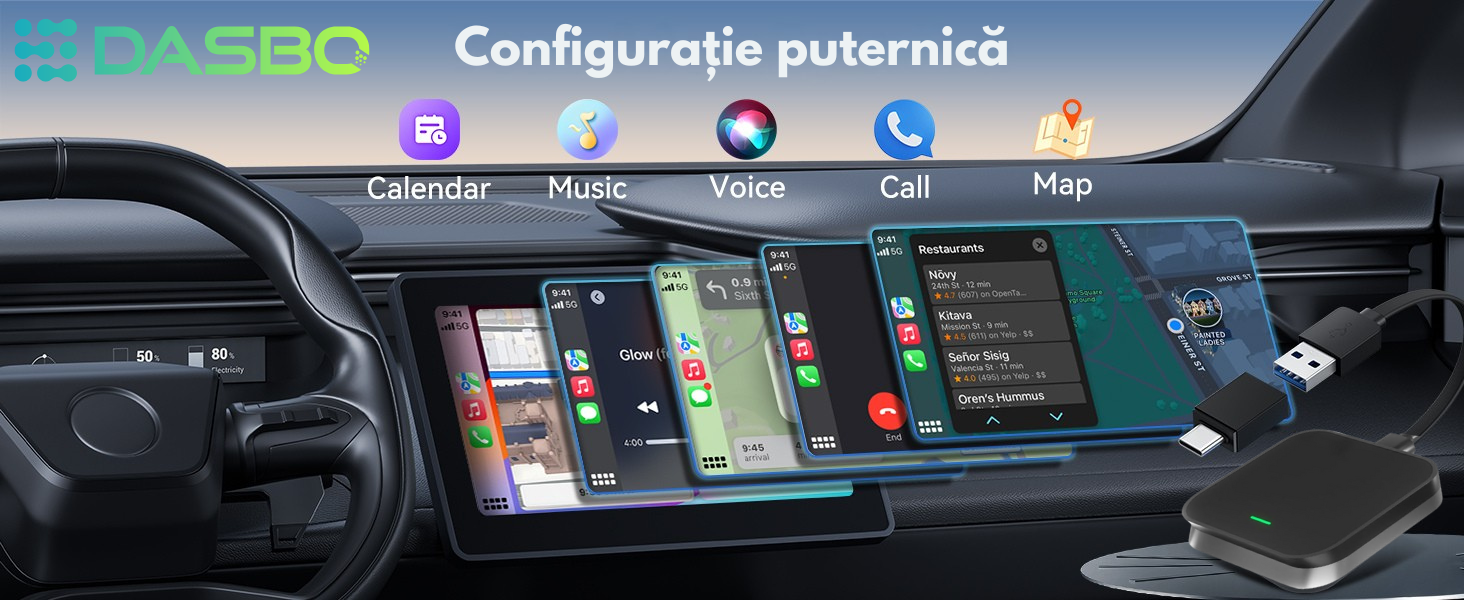 Adaptor Wireless CarPlay & Android Auto 2-in-1 Dasbo® Model 2026– Compatibilitate universala prin USB Android & IOS Auto Adaptor Wireless CarPlay & Android Auto 2-in-1 Dasbo® Model 2026– Compatibilitate universala prin USB Android & IOS Auto