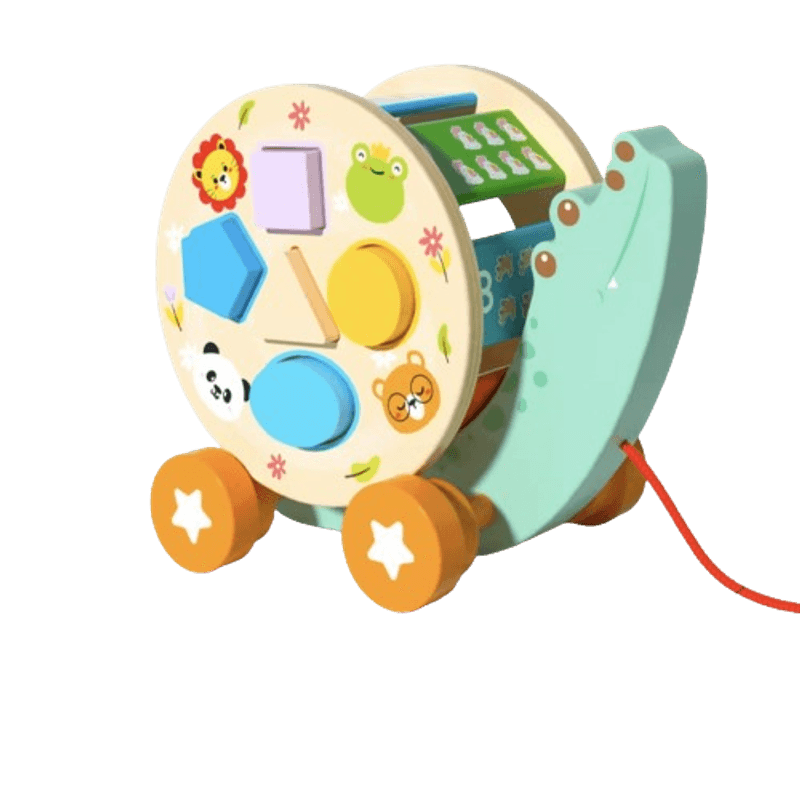 Aligator de tras din lemn cu forme geometrice, EduJucarii Aligator de tras din lemn cu forme geometrice, EduJucarii