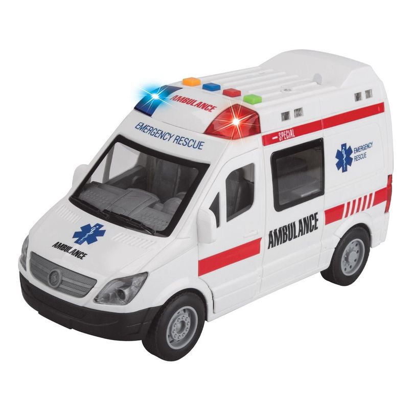 Ambulanta jucarie, model 1:16, sunet si lumina, multicolor, plastic Ambulanta jucarie, model 1:16, sunet si lumina, multicolor, plastic