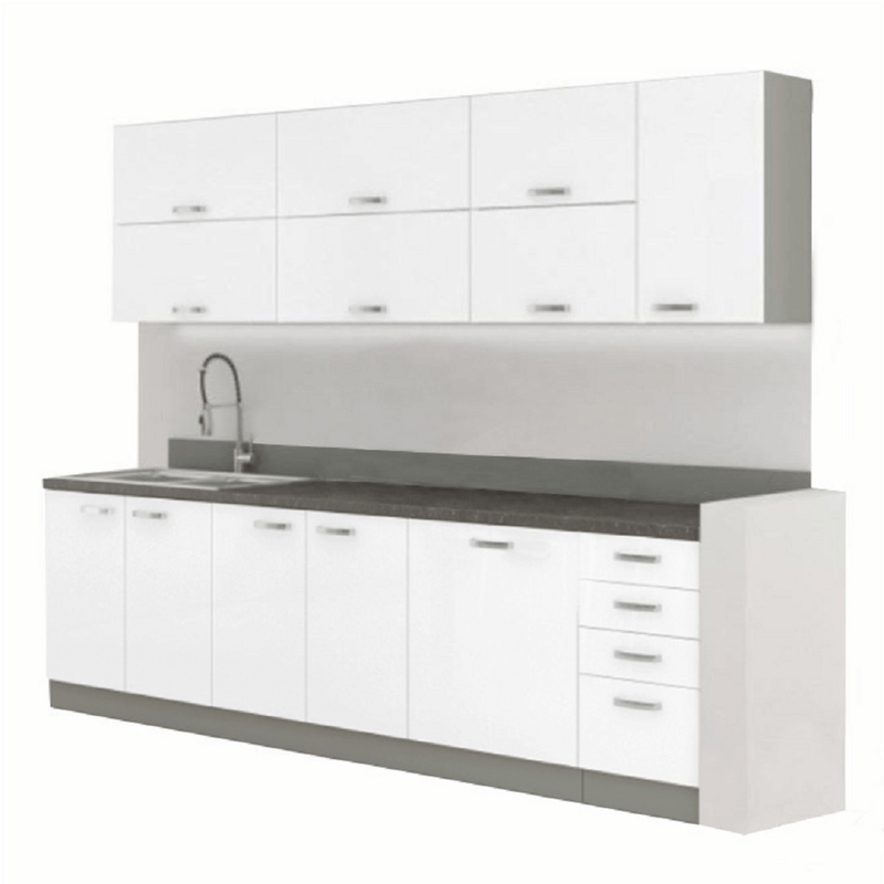 Ansamblu bucatarie, alb extra lucios/gri, PRADO Ansamblu bucatarie, alb extra lucios/gri, PRADO