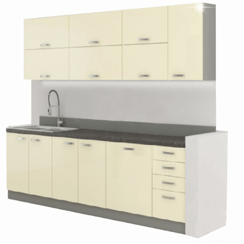 Ansamblul de bucatarie, crem extra lucios/gri, PRADO Ansamblul de bucatarie, crem extra lucios/gri, PRADO