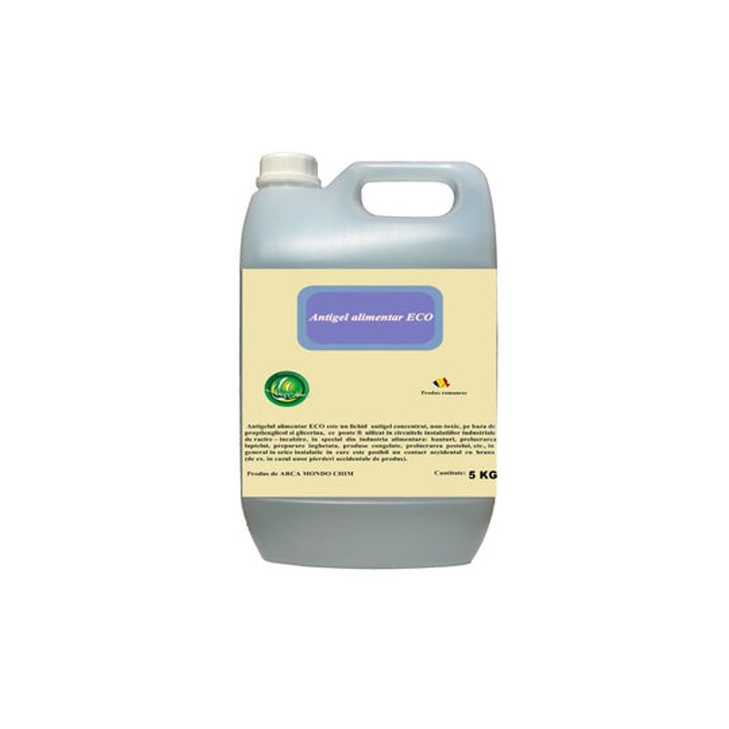ANTIGELUL ALIMENTAR ECO ARCA LUX este un lichid antigel concentrat, non-toxic, pe baza de glicerina, ce poate fi utilizat in circuitele instalatiilor industriale de racire – incalzire, in special din industria alimentara: bauturi, prelucrarea laptelui, preparare inghetata, produse congelate, prelucrarea pestelui, etc., in general in orice instalatie in care este posibil un contact accidental cu hrana (de ex.
