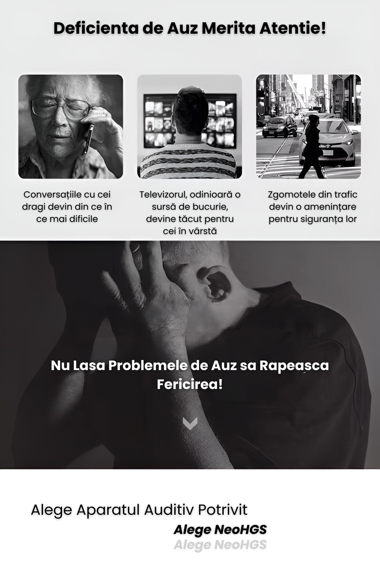 NeoHGS iti promite o solutie eficienta si rapida pentru redobandirea claritatii auditive.