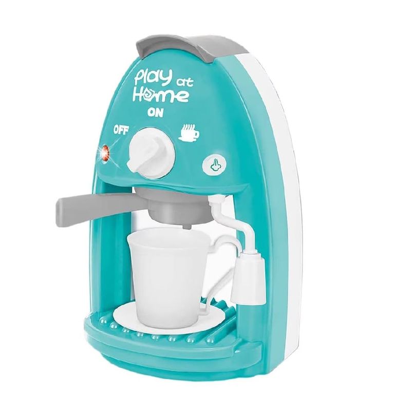 Aparat de cafea de jucarie, pentru copii 3 ani+, cu sunete, lumini si ceasca, plastic, 22 cm inaltime, turcoaz