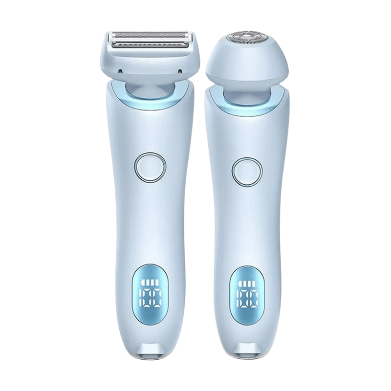 Aparat de ras electric 2 in 1 pentru femei, 2 capete interschimbabile, mediu uscat si umed, rezistent la apa IPX7, ecran LCD, design ergonomic, USB Type-C, capacitate baterie 800mAh, Albastru, Production by A&A