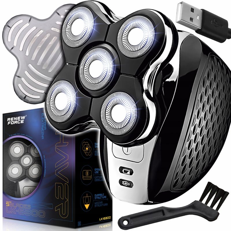 Aparat de ras electric Renew Force, Acumulator 2000 mAh, 5 Lame Rotunde, Impermeabil, Fara Fir, Negru Gri