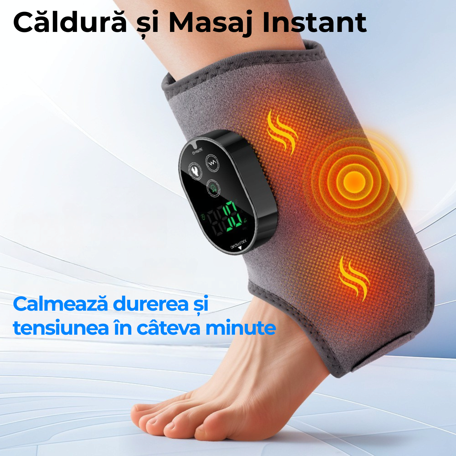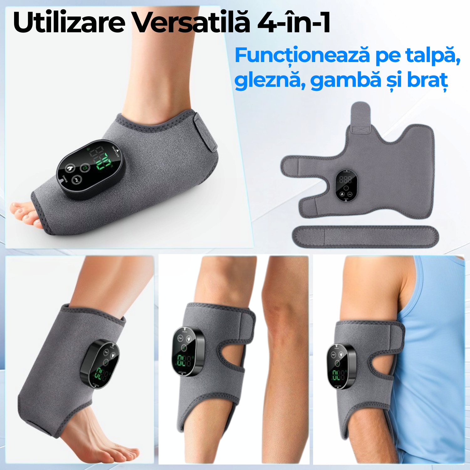 (Perfect pentru glezna, talpa si brat – cu 6 trepte de temperatura, 3 nivele de vibratie, baterie 3000mAh si ecran LED)