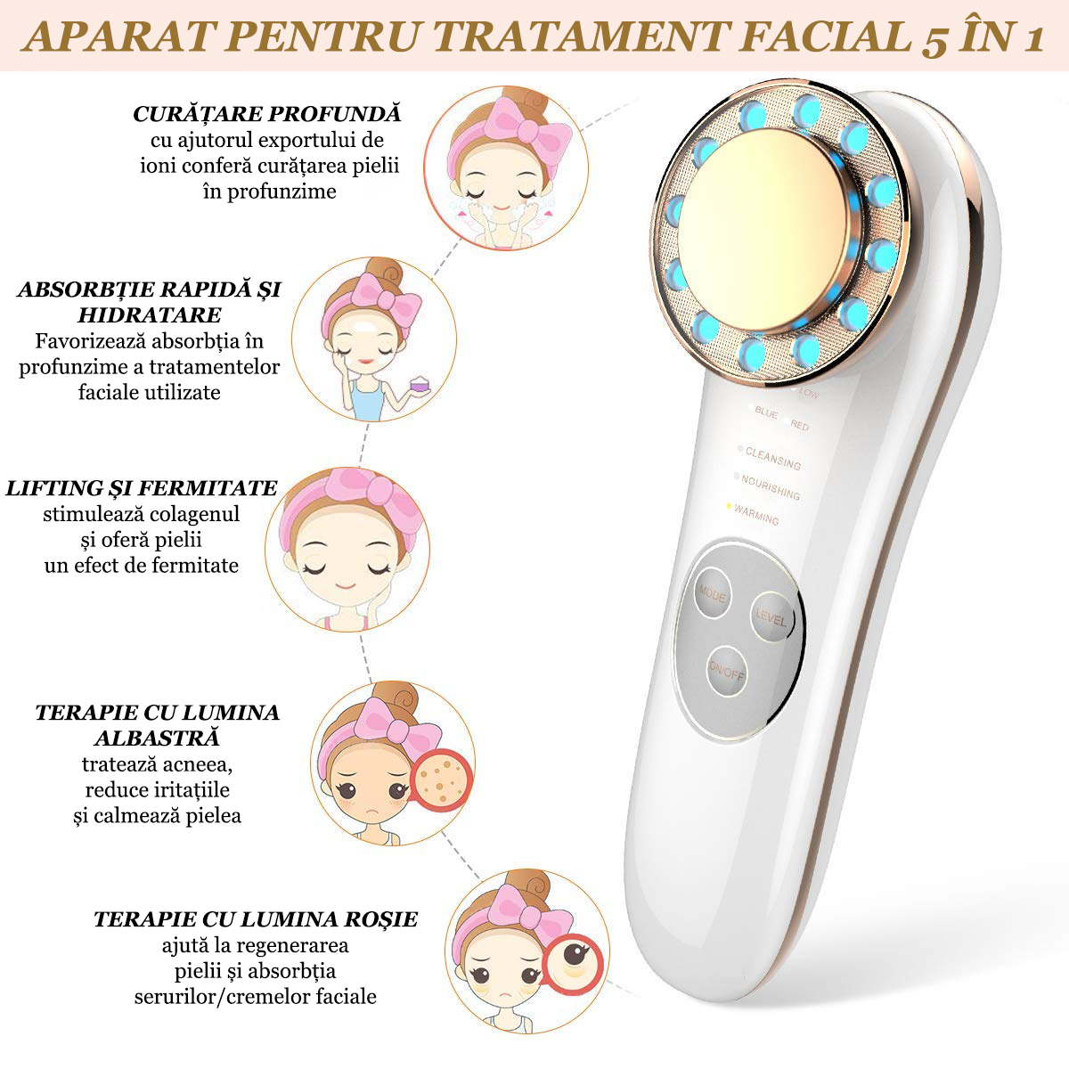 Principalele avantaje ale utilizarii aparatului pentru tratament si ingrijire 5 in 1 sunt: