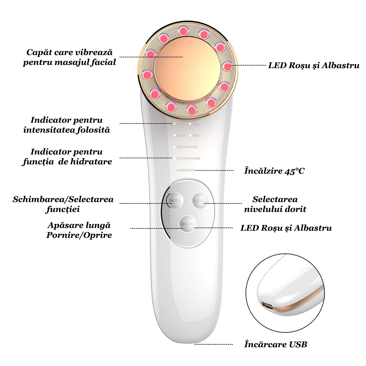 Acest dispozitiv este perfect pentru rutina zilnica de ingrijire a pielii.