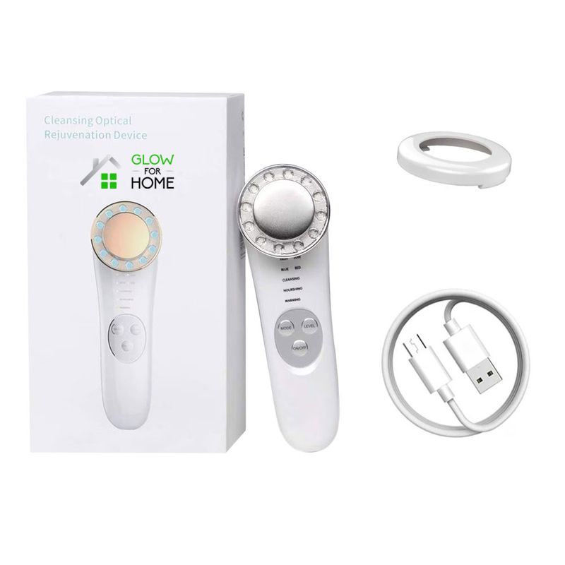 Aparat masaj facial, LED, Mezoterapie, Fototerapie,Lifting facial, Anti Rid, vibratii EMS, Microcurent, dispozitiv tratament si ingrijire faciala 5 in 1, Alb
