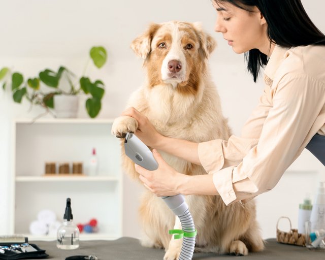 Unitate de aspirare, furtun flexibil, perie de ingrijire, masina de tuns, perie de indepartare a parului, perie de masaj, perie plata 2 in 1, perie rotativa, 6 piepteni ghidaj pentru masina de tuns, perie de curatare, lubrifiant, suport pentru accesorii, geanta pentru accesorii, manual de utilizare