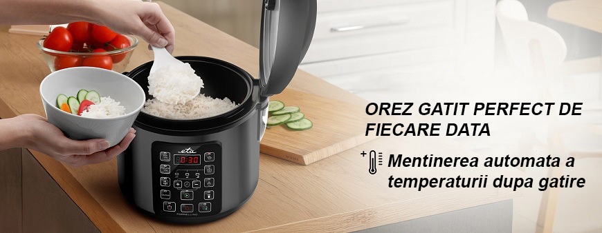 Gatirea orezului nu a fost niciodata mai simpla. Cu ETA Fornellino vei avea de fiecare data un orez perfect gatit, aproape fara efort. Functia complet automata gestioneaza totul in locul tau, iar dupa terminarea gatirii pastreaza mancarea calda pana la 12 ore. Este disponibila si functia de pornire intarziata — poti programa inceputul gatirii intre 1 si 15,5 ore.