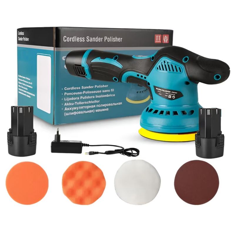 Aparatul Polish Auto fara fir este solutia perfecta pentru lustruirea si intretinerea masinii tale. Cu un design compact si portabil, acest dispozitiv ofera libertate de miscare, eliminand nevoia de cabluri incomode. Echipat cu doi acumulatori de 12V, aparatul asigura o durata lunga de utilizare, permitand continuarea lucrarilor fara intreruperi. Acumulatorii se reincarca usor, iar incarcatorul inclus in pachet poate fi conectat la o sursa de alimentare de 100-240V AC, oferind o compatibilitate larga.