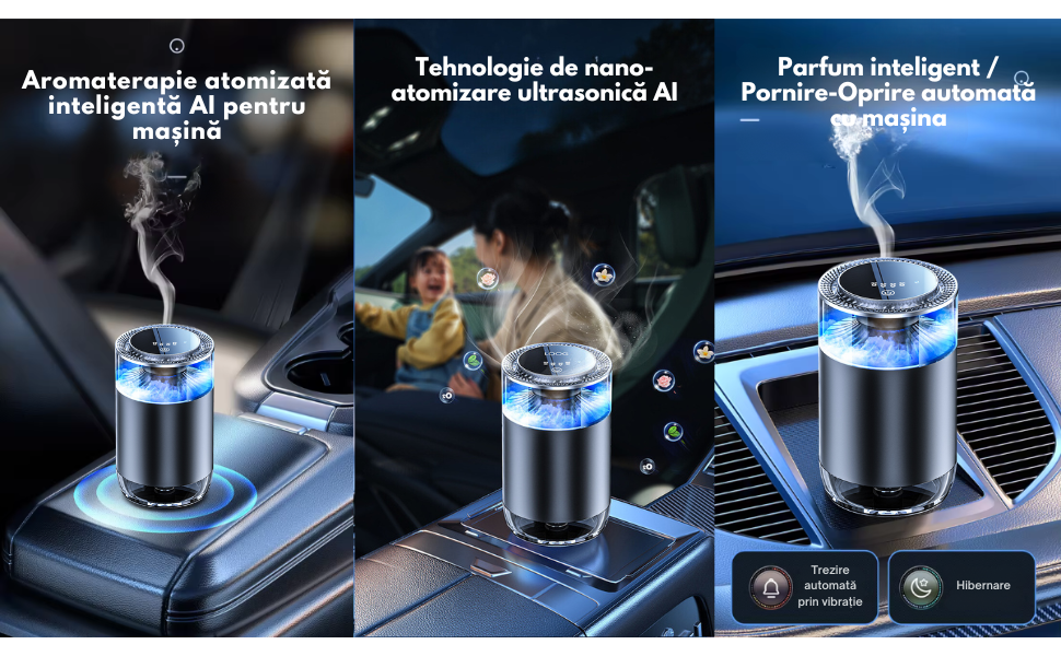 Control AI Inteligent: Uitati de setarile manuale! Difuzorul se activeaza si se dezactiveaza automat odata cu pornirea sau oprirea motorului. In plus, sistemul inteligent de gestionare a energiei asigura conservarea bateriei si o functionare eficienta, oferind un parfum optim chiar si in timpul celor mai lungi calatorii.