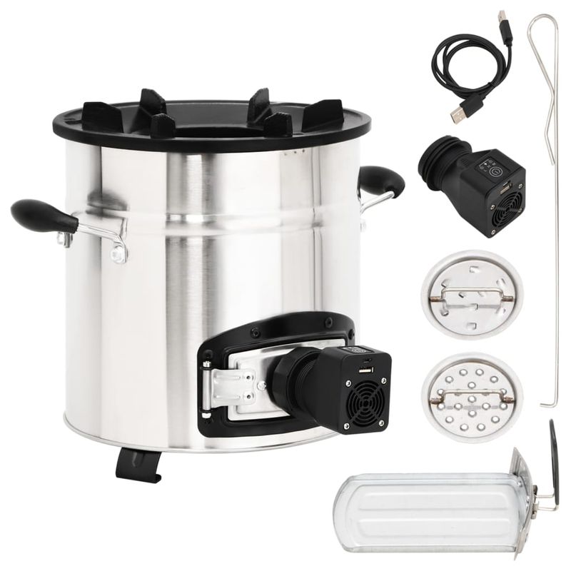 Aragaz cu lemne, cu ventilator USB argintiu, 35,5x26x28 cm otel Aragaz cu lemne, cu ventilator USB argintiu, 35,5x26x28 cm otel