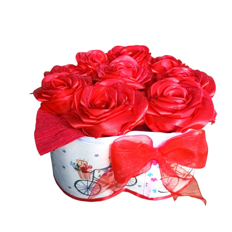 Aranjament flori de satin, realizat manual, 20x18 cm, rosu Aranjament flori de satin, realizat manual, 20x18 cm, rosu