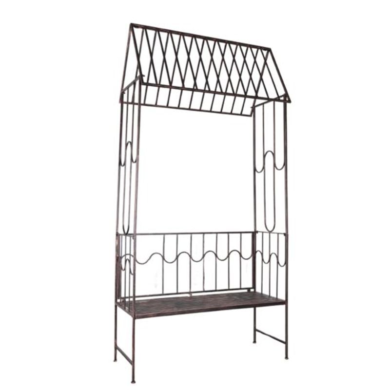 Arcada metalica, pergola, pentru gradina, cu banca, bronz antic, 123x63x252 cm Arcada metalica, pergola, pentru gradina, cu banca, bronz antic, 123x63x252 cm