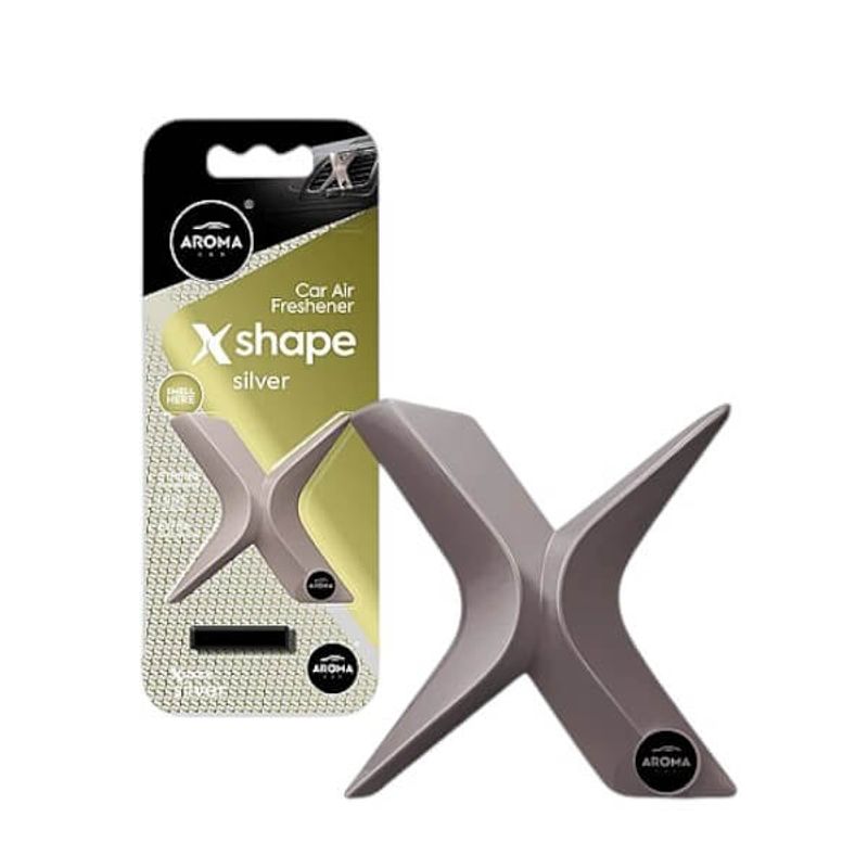 AROMA CAR Polymer X-Shape Silver – Odorizant Auto Polimeric, 40 Zile Prospețime