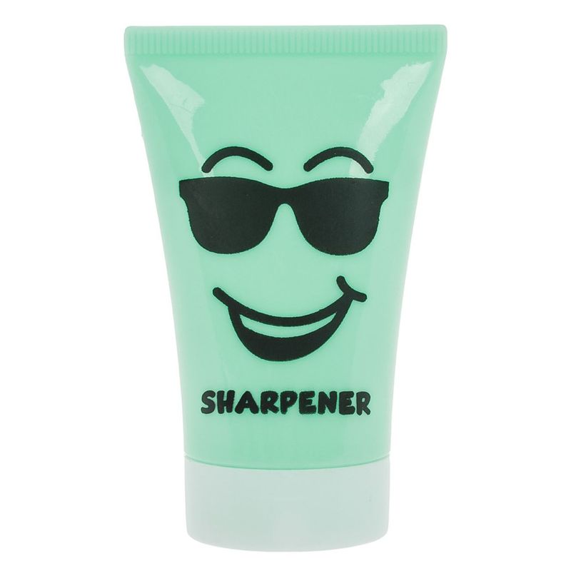 Ascutitoare, model tub crema, plastic, imprimeu zambet, verde, 6.5cm Ascutitoare, model tub crema, plastic, imprimeu zambet, verde, 6.5cm