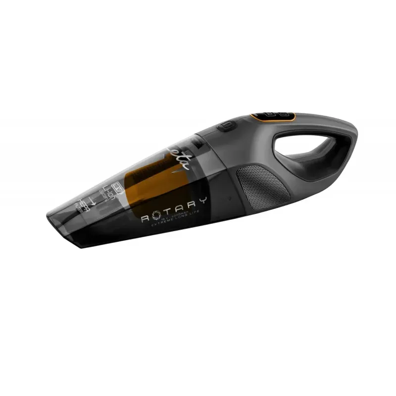 Functionare fara fir, cu acumulator Li-Ion de 18 V Design modern si elegant, usor si compact 2 viteze de aspirare Incarcare la retea, cu adaptor de alimentare Timp de incarcare aproximativ 5 ore Recipient de praf transparent cu un volum de 400 ml Durata de functionare: pana la 30 minute Filtru HEPA de inalta calitate Maner cu forma ergonomica pentru utilizare confortabila Indicator luminos de incarcare Nivel zgomot 80 dB(A) re 1pW Accesorii incluse in pachet: Perie rotativa turbo - special conceputa pentru aspirarea mobilierului tapitat Duza ingusta - potrivita pentru aspirarea in locuri greu accesibile (de exemplu, intre elementii radiatorului, in spatele mobilierului etc.) Perie cu peri fini – pentru indepartarea praful sau panzele de paianjen de pe mobila, pereti, tablouri, etc. Adaptor de retea 100-240 V (AC) / 22 V (DC) pentru incarcarea aspiratorului Baza de incarcare cu posibilitate de montare pe perete Curatenia sta in mainile tale Aspiratorul de mana din noua generatie ETA Rotary va va incanta cu puterea sa mare de aspirare si cu peria turbo rotativa care asigura o colectare eficienta a murdariei. Bateria Li-ion de 18 V de inalta calitate va permite pana la 30 de minute de aspirare continua si poate fi incarcata complet in doar 5 ore . Datorita greutatii reduse, a dimensiunilor reduse si a manerului cu forma ergonomica, acest aparat este usor de manevrat. Butonul ON/OFF poate fi blocat in pozitia selectata, astfel ca nu trebuie sa-l tineti apasat atata timp cat aspirati. Praful si murdaria sunt colectate in recipientul transparent de 400 ml . Accesorii bogate Baza de incarcare se poate monta pe perete pentru depozitarea practica a aspiratorului si a accesoriilor. Incarcarea completa este semnalizata de un indicator luminos. Pe langa peria turbo rotativa cu actionare directa - ideala pentru aspirarea mobilierului tapitat sau a interiorului autoturismului - veti gasi in cutie si o duza ingusta pentru aspirarea in locuri greu accesibile, plus o perie cu peri fini pentru indepartarea prafului sau a panzele de paianjen de pe mobila, pereti ori tablouri.
