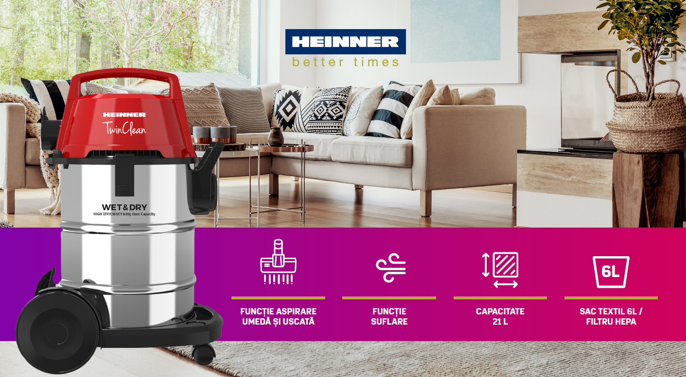 Recipientul colector de 21 de litri iti ofera posibilitatea utilizarii continue, fara intrerupere a functiei de aspirare umeda, astfel incat sa poti igieniza intreaga suprafata aferenta casei tale de lichidele nedorite.