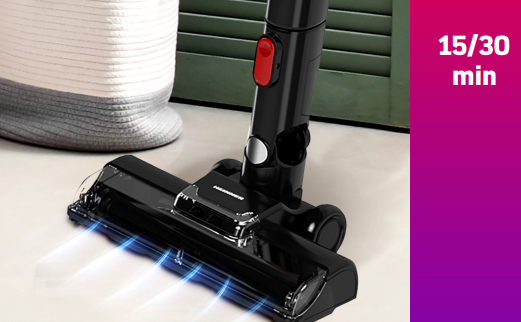 Timpul maxim de utilizare al aspiratorului este de 30 de minute in modul low si 15 min in modul Max, suficient pentru a curata orice loc din casa.