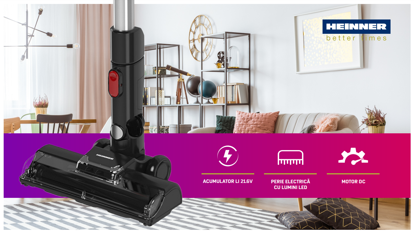 Aspiratorul Heinner HSVC-M21.6RD functioneaza pe baza de acumulator Lithium, cu o capacitate de 21.6V, pe cat de puternic, pe atat de usor in utilizare. Te vei bucura de libertate de miscare, fara a mai fi limitat de cablul de alimentare. Sistemul de filtrare ciclonic ofera performanta excelenta in aspirare prin retinerea particulelor de praf si murdarie, pastrand astfel aerul din casa mai curat.