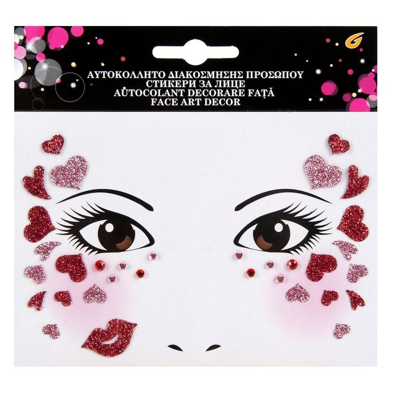 Autocolante decorare fata, glitter, inimioare, rosu-roz Autocolante decorare fata, glitter, inimioare, rosu-roz