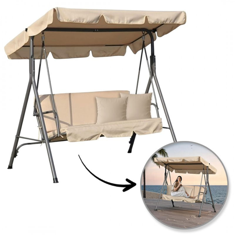 Balansoar gradina acoperit, 3 locuri, maxim 260 kg, perne bej, JollyMag, HO01K Balansoar gradina acoperit, 3 locuri, maxim 260 kg, perne bej, JollyMag, HO01K