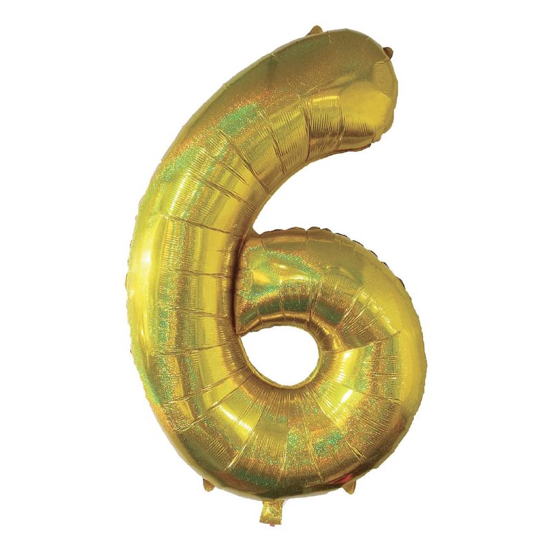 Balon petrecere, holografic, cifra 6, auriu, 110 cm, aluminiu Balon petrecere, holografic, cifra 6, auriu, 110 cm, aluminiu