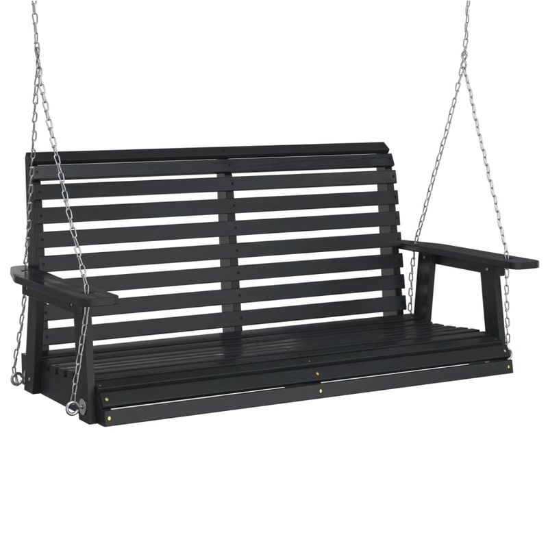 Banca balansoar gradina lanturi metalice negru lemn masiv brad, mărime 122.5x63x56 cm Banca balansoar gradina lanturi metalice negru lemn masiv brad, mărime 122.5x63x56 cm