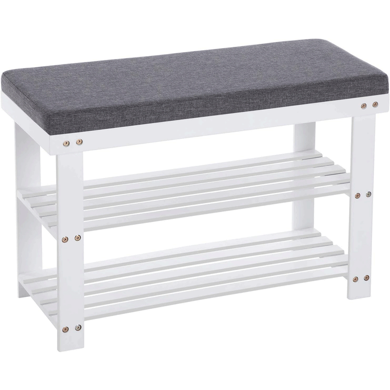 Caracteristici: Culoare: Alb, Gri Material: Cadru din bambus, captuseala din spuma Dimensiuni: 71 x 29 x 49 cm (L x l x H) Capacitate de incarcare statica a blatului: 150 kg Capacitate de incarcare statica a fiecarui raft: 20 kg Note: Va rugam sa nu utilizati produsul intr-un mediu umed. Pastrati produsul departe de obiecte ascutite si substante chimice agresive. Despre acest articol Rasfatati-va cu putina pace si liniste: Stati departe de vechile dvs. scaune dure ca piatra. Incercati aceasta banca confortabila pentru pantofi, captuseala din spuma groasa de 2,5 cm asigura un nivel ridicat de confort atunci cand va incaltati. Un ajutor puternic de zi cu zi: Ranforsata cu mai multe suruburi 2 in 1, aceasta banca pentru pantofi este foarte stabila si are o capacitate de incarcare buna (scaun: pana la 150 kg, rafturi: pana la 20 kg fiecare). Organizeaza-ti pantofii: Sunteti deranjat de mormanele de pantofi de pe podea? Acest suport pentru pantofi va va veni in ajutor. Depozitati pantofii folositi frecvent pe cele 2 rafturi ale sale, astfel incat sa ii puteti accesa cu usurinta dimineata. Asamblare usoara: Datorita structurii simple, instructiunilor detaliate si a suruburilor practice, care au un varf ascutit si pot fi usor insurubate in gauri, puteti asambla cu usurinta aceasta banca.Dupa o zi lunga de munca, pur si simplu asezati-va pe aceasta banca, scoateti-va pantofii confortabil si lasati stresul in urma.
