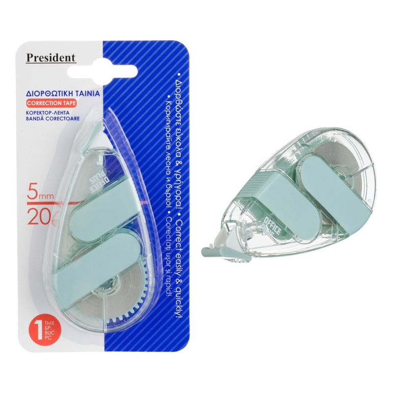 Banda corectoare, president, maxi, verde menta, lungime 20 m, latime 5 mm Banda corectoare, president, maxi, verde menta, lungime 20 m, latime 5 mm