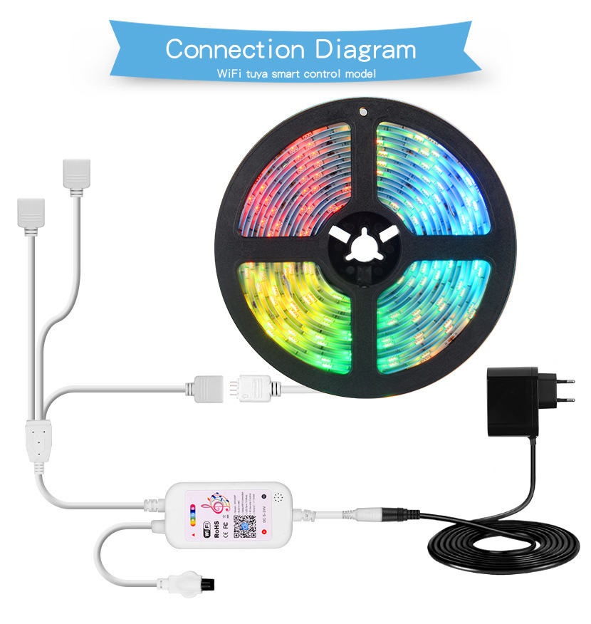 O altă caracteristică notabilă este conectivitatea WIFI, care iți permite să controlezi banda LED de la distanță, prin intermediul diverselor aplicații smart compatibile precum Siri, Alexa, Google Home, Smart Life sau Tuya Smart. Astfel, poți controla iluminatul prin comenzi vocale sau prin interfața aplicațiilor dedicate, oferindu-ți o flexibilitate și mai mare in gestionarea atmosferei dorite.