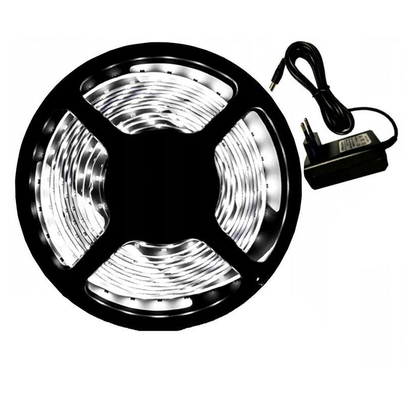 Banda LED impermeabila, A+, 5 m, 12V, 7W, SMD 3528, adaptor de alimentare, alb rece Banda LED impermeabila, A+, 5 m, 12V, 7W, SMD 3528, adaptor de alimentare, alb rece