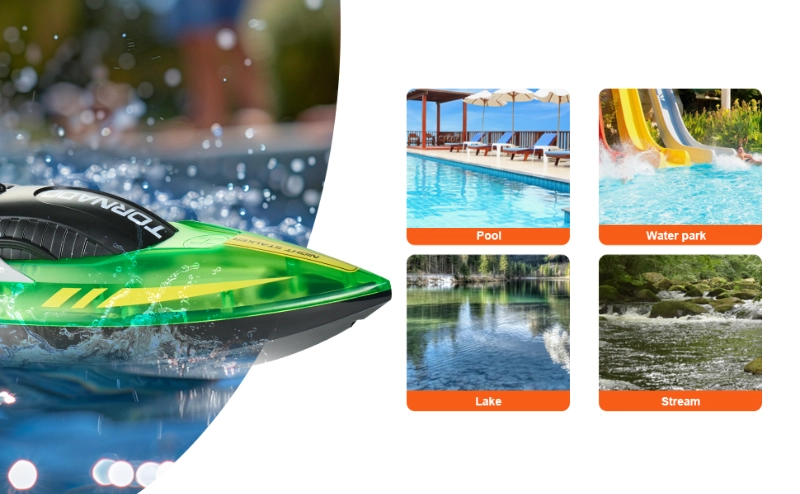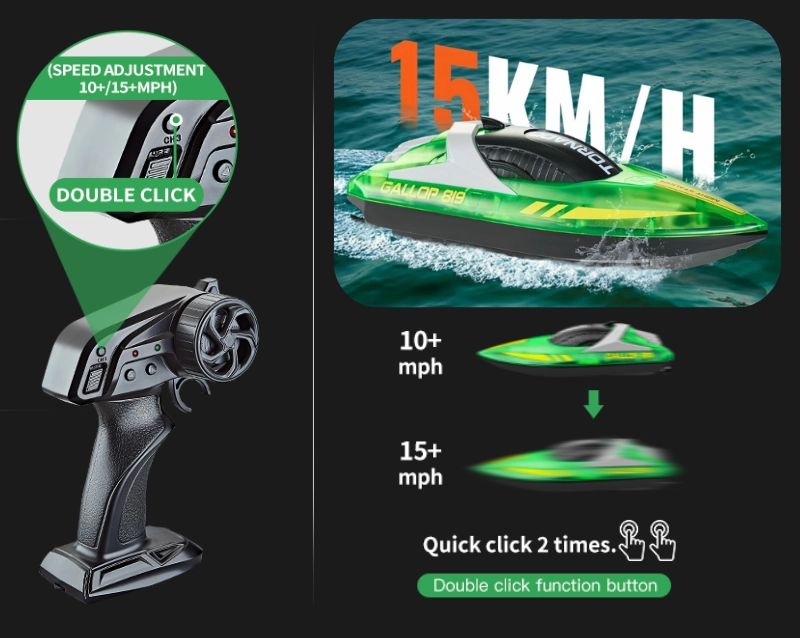 Barca cu telecomanda iUni HJ819, RC High-Speed Boat, Viteza 15 km/h, 2.4GHz, Verde Barca cu telecomanda iUni HJ819, RC High-Speed Boat, Viteza 15 km/h, 2.4GHz, Verde