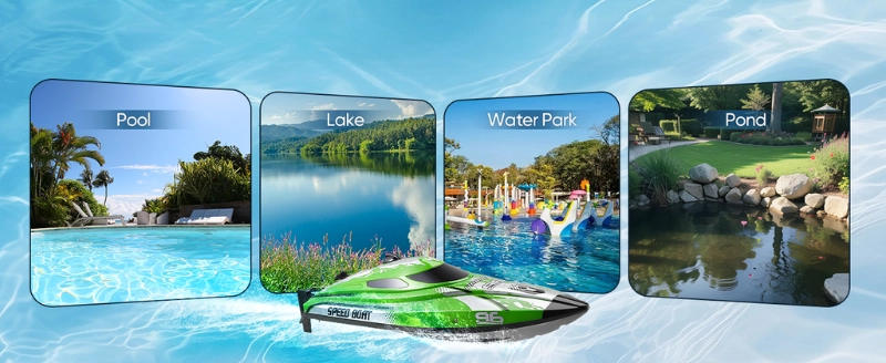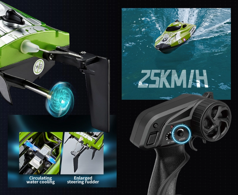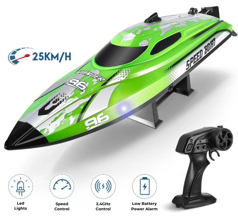 Barca cu telecomanda iUni HJ820, RC High-Speed Boat, Viteza 25 km/h, 2.4GHz, Green Barca cu telecomanda iUni HJ820, RC High-Speed Boat, Viteza 25 km/h, 2.4GHz, Green