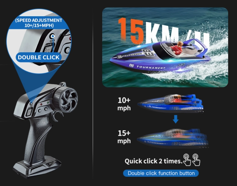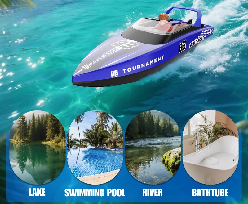 Barca cu telecomanda iUni HJ821, RC High-Speed Boat, Viteza 15 km/h, 2.4GHz, Blue Barca cu telecomanda iUni HJ821, RC High-Speed Boat, Viteza 15 km/h, 2.4GHz, Blue