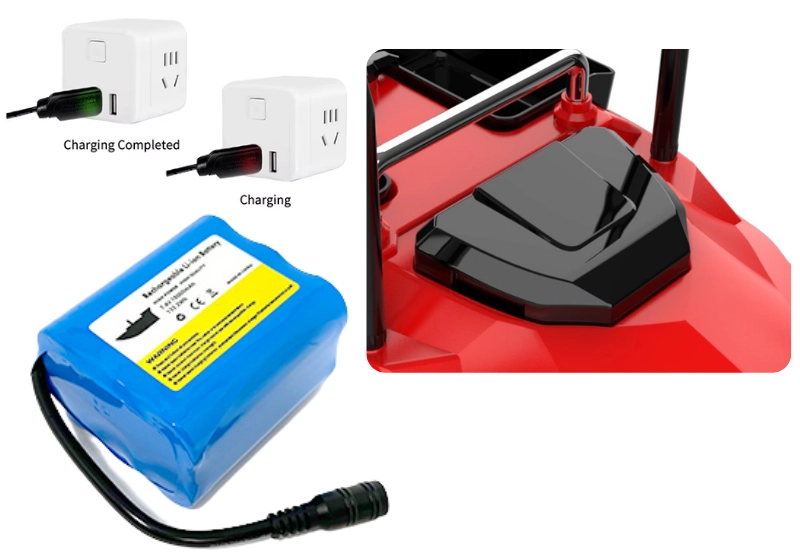 Cu o baterie reincarcabila de 18000mAh (inclusa in pachet), barca are o autonomie de aproximativ 6 ore (autonomie influentata de greutatea momelii si conditiile meteo).